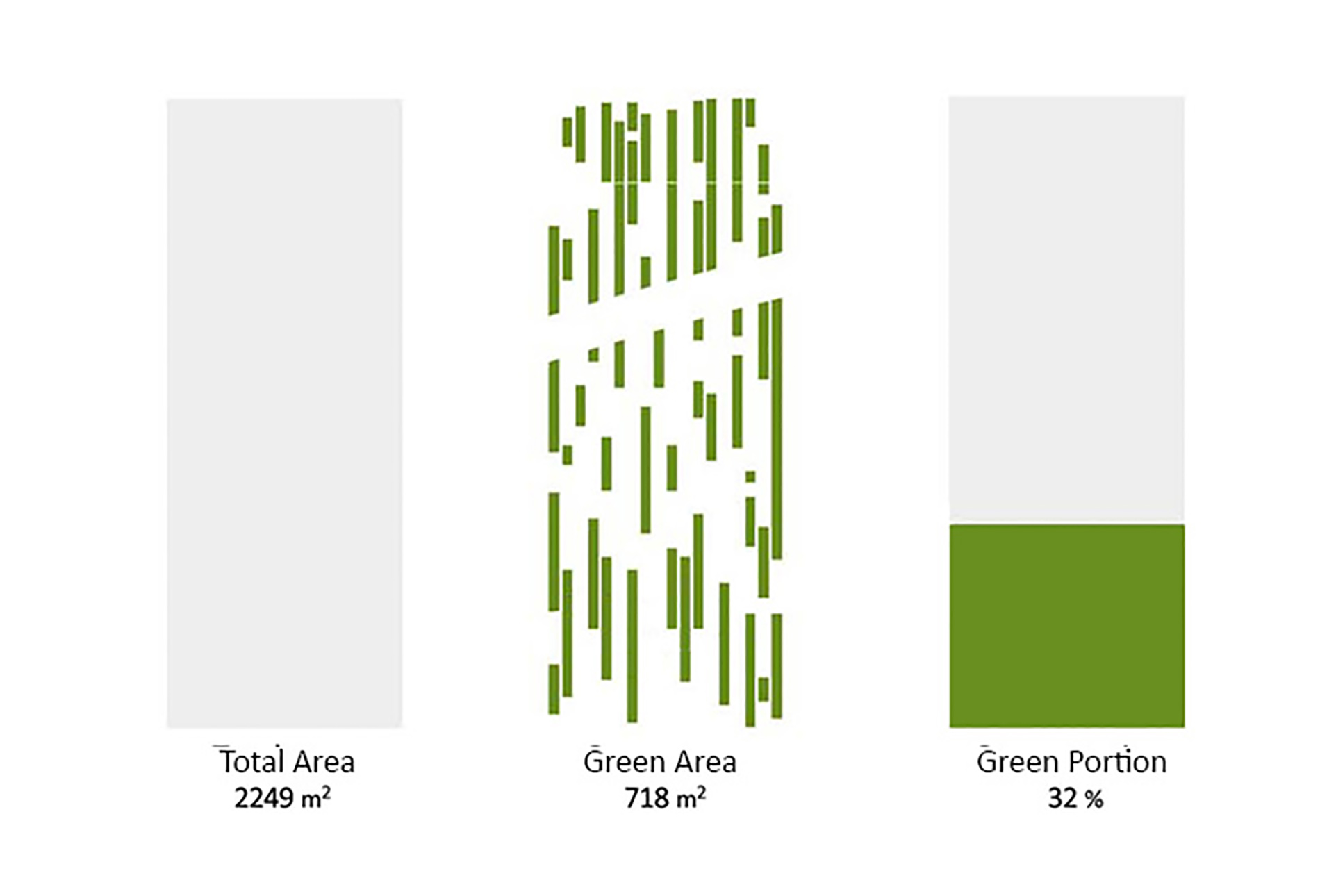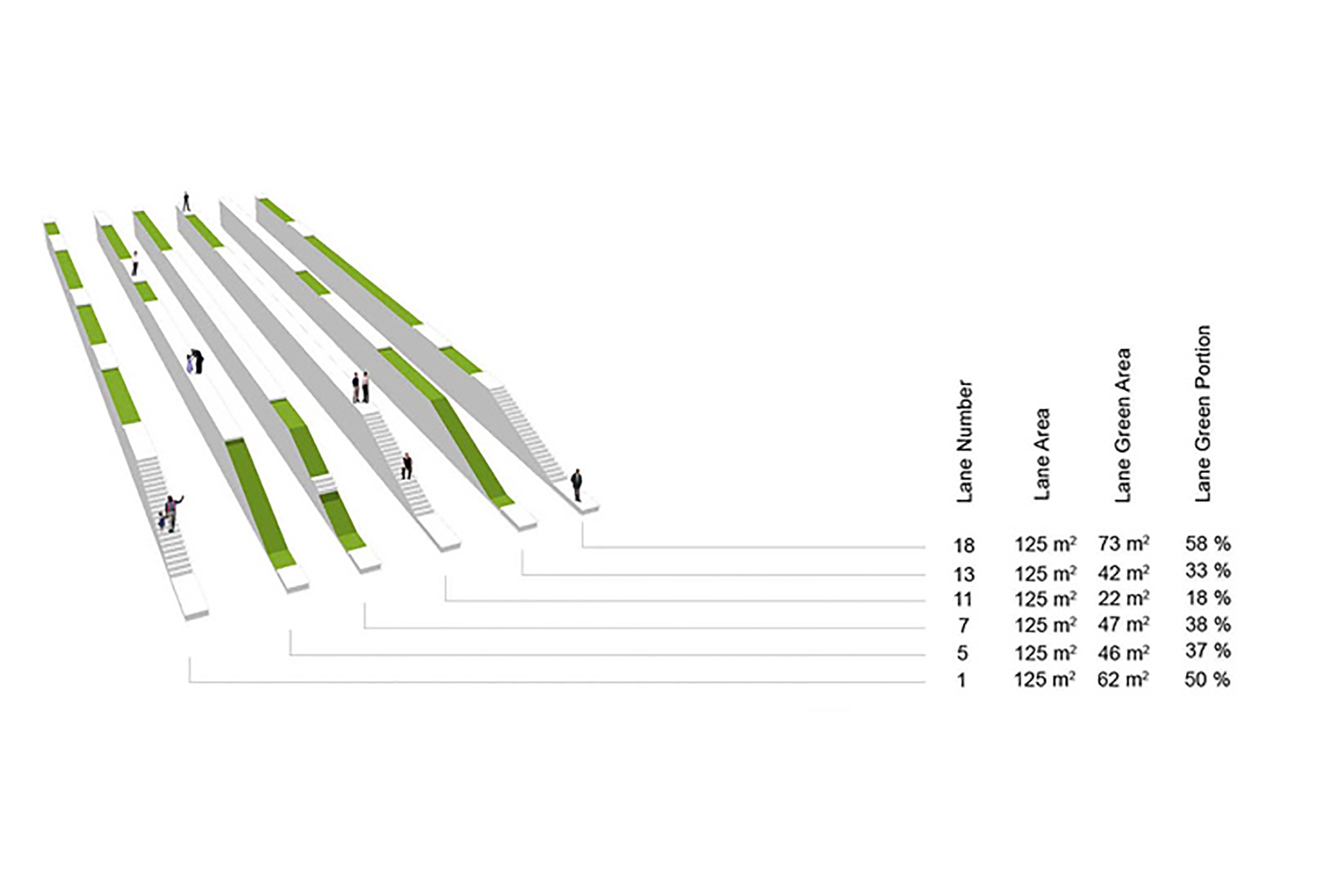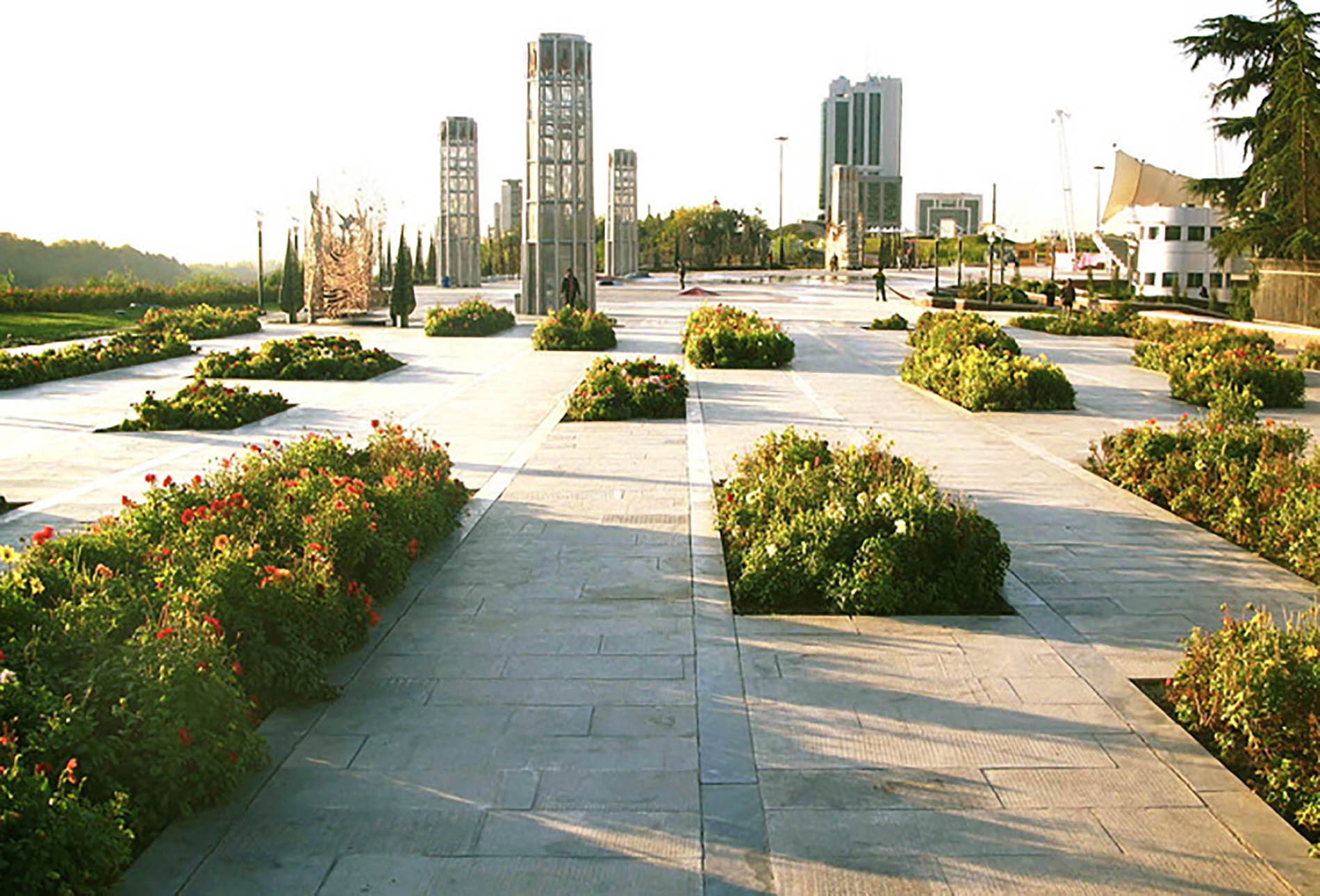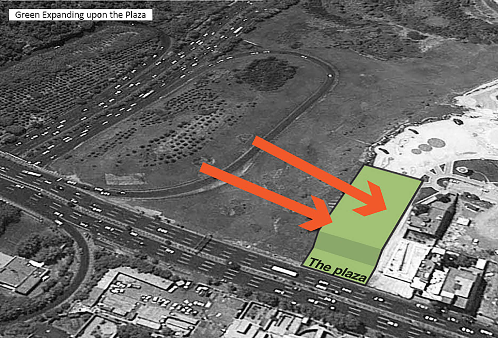 است. برای ارتباط راحتتر، یک رمپ ارتباطی از میان آبنمای کنار میدان، سطح پیاده راه لبه اتوبان حقانی را با سطح میدان مرتبط می سازد. به این ترتیب حدود ۳۵ درصد از حوزه طبیعی در محل میدان دستنخورده باقیمانده و توسعه فضای سبز را در کنار توسعه فضای شهری ممکن ساخته است.