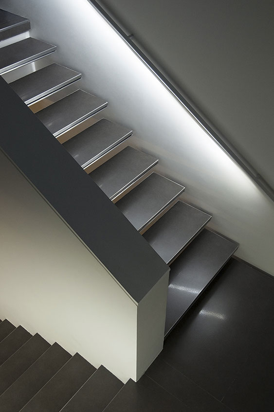با توجه به جهتگیری زمین به سمت جنوب و غرب، جداره صلب در ضلع جنوب-شرقی علاوه بر حفط محرمیت، ایجاد ارتباط درون و بیرون، و حل کردن کاربریها، در کنترل نورگیری فضاهای داخلی نقشی اساسی ایفا میکند. فضای آشپزخانه و اتاق خوابها در نمای پشت از نور شمال – متمایل به شرق – و فضای نشیمن اصلی در نمای جلو از نور جنوب – متمایل به غرب – برخوردارند که برای کنترل نور جنوب از پیشانی ساختمان و لوورها استفاده شده است. جداره شیشه ای بلند امکان بیشترین بهرهگیری از ارتباط درون با محیط باغ و همچنین یکپارچگی در فضای داخلی بین دو طبقه فراهم کرده است.