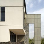 استفاده از ورق آهن اکسپوز در طراحی درب ورودی ساختمان و باکس رختکن ورودی اصلی که از دل شمال غربی دیوار بتنی به صورت معلق خود را بیرون کشیده، از دیگر المانهای دکوراتیو طراحی نمای این پروژه میباشد.